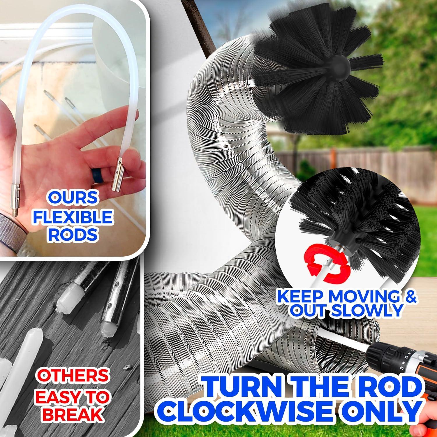 EASY TO USE & EFFORTLESS FOR GOOD CLEANING: Dryer vent cleaner kit can be used with or without any kind of power drill and will help you achieve professional results; Just always turn the rod clockwise and keep moving in&out slowly; Kindly remind that while cleaning around corners and turns or stubborn lint trap, slow down and then accelerate slowly