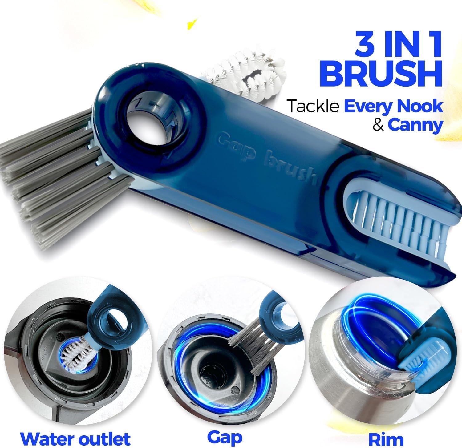 𝟯-𝗶𝗻-𝟭 𝗠𝗨𝗟𝗧𝗜𝗙𝗨𝗡𝗖𝗧𝗜𝗢𝗡𝗔𝗟 𝗕𝗥𝗨𝗦𝗛𝗘𝗦: Features rim brush, detail corner brush, and nipple brush. U-shaped Rim brush: match the top of rim to clean stubborn stains around the cup mouth. Detail corner brush with stiff hard bristle: Remove the debris in the corner groove of the container. Nipple brush: thoroughly clean baby bottle nipple.