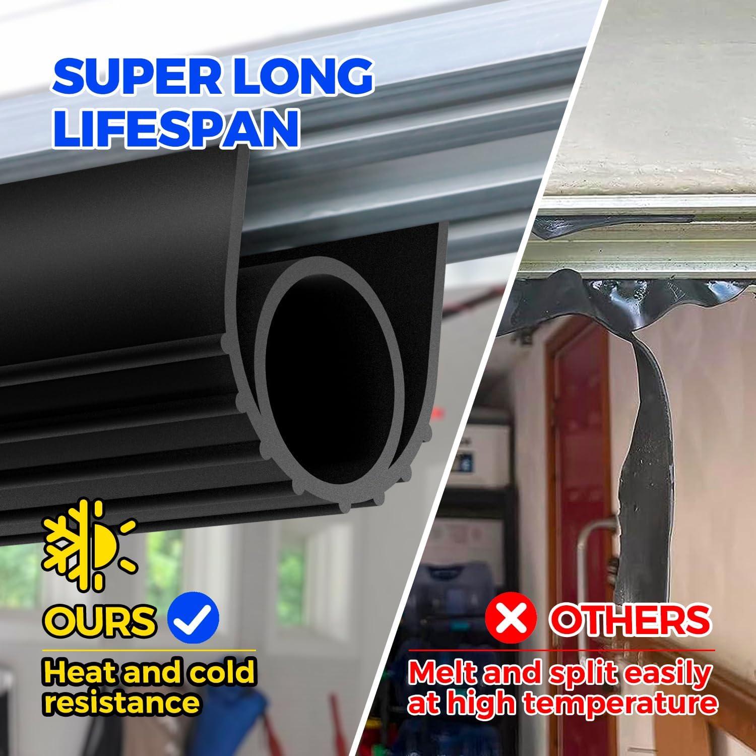 【Freeze-Resistance】Engineered for cold climates, this U-shaped garage door seal remains resilient against freezing conditions, providing year-round protection.